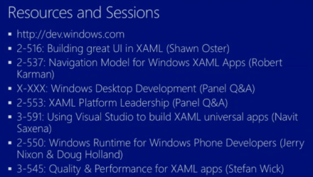 Other sessions: 3-591 – Using Visual Studio to build XAML Universal Apps (Saxena)